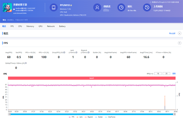 游戲期間用專(zhuān)業(yè)幀率測(cè)試工具全程記錄,OPPO A96在運(yùn)行《王者榮耀》全程基本就是滿(mǎn)幀水平,基本沒(méi)有任何大的掉幀發(fā)生,看來(lái)團(tuán)戰(zhàn)場(chǎng)景也完全hold得住。