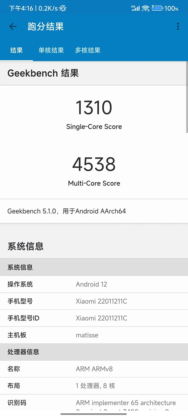 在針對CPU表現(xiàn)的GeekBench5.1中,Redmi K50 Pro CPU單核成績?yōu)?310,多核成績?yōu)?538。