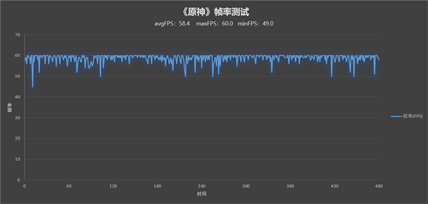 使用最高設(shè)置,開啟60幀模式,測試《原神》。依舊按照我們的固定測試路線進(jìn)行測試,Redmi K50 Pro的幀率表現(xiàn)非常平穩(wěn),全程平均幀率為58.4 FPS,偶有波動,但最低也達(dá)到了49 FPS。