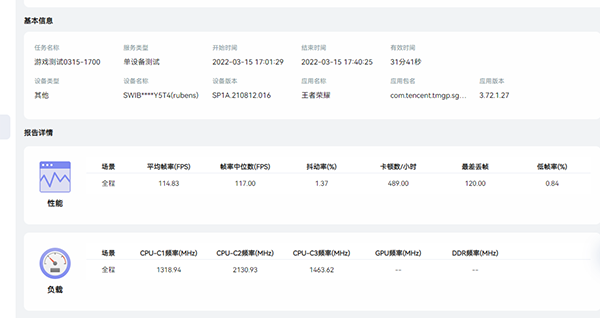 在《王者榮耀》測(cè)試中,筆者開啟120幀模式,并且在超高分辨率、極致畫面條件下開啟對(duì)局。