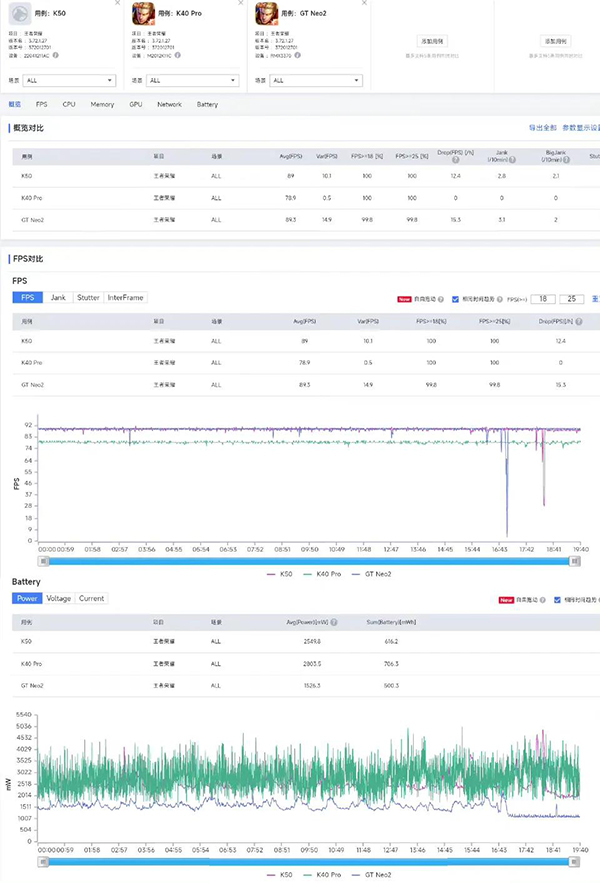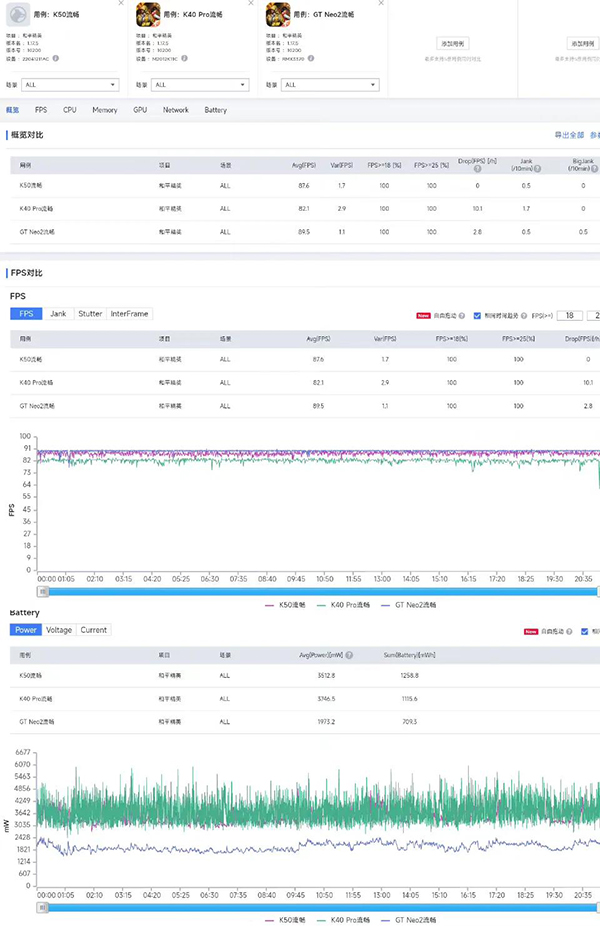 在高清畫質(zhì)90幀模式下,紅米K50平均幀數(shù)89fps,整局游戲功耗2.5W,相較于測試的驍龍888和驍龍870機(jī)型要好。