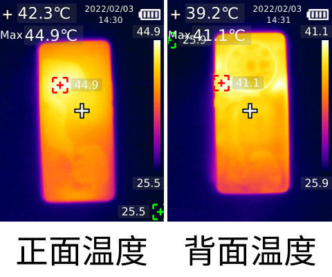 從幀率曲線(xiàn)中來(lái)看,榮耀Magic4 Pro保持了將近17分鐘左右的性能全開(kāi),之后開(kāi)始進(jìn)行控溫,將最高幀率鎖定在了40幀。在游戲最后階段,我們嘗試進(jìn)行低負(fù)載場(chǎng)景(游戲中強(qiáng)化圣遺物場(chǎng)景),最終讓溫度得到控制后,最高幀率重新回到了60幀。手機(jī)表面溫度控制在了45度以下。
