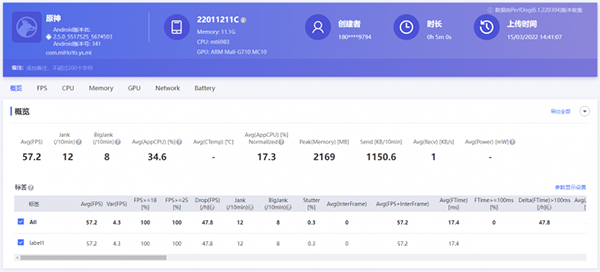 游戲性能顯然更能直觀的反映出平臺在體驗上的優(yōu)勢。我們直接跳過騰訊全家桶,只用目前移動平臺資源消耗最吃勁《原神》來進行測試。在畫質(zhì)和特效全高,并開啟60fps幀率的模式下,Redmi K50 Pro的平均幀率達到57.2fps,同時幀率抖動只有12%,而卡頓現(xiàn)象的出現(xiàn)幾率只有8%,這個結(jié)果相比驍龍8Gen1平臺明顯要占優(yōu)。