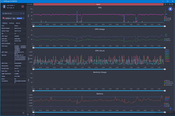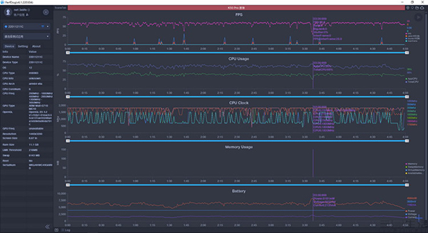 首先登場(chǎng)的,是大家喜聞樂見的《原神》。我們手動(dòng)將其所有的畫質(zhì)選項(xiàng)都調(diào)節(jié)到了最高,并關(guān)閉動(dòng)態(tài)模糊,然后用Perfdog記錄下了其運(yùn)行時(shí)的幀率和功耗。