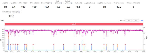 所以還是上我們的手游天花板-原神,采用的方式為標(biāo)準(zhǔn)的璃月港跑圖,半小時(shí)平均幀率為:58,機(jī)身最高溫度為:45.6°,在幀率存在不小波動(dòng),考慮到該芯片定位,畫質(zhì)拉滿有這個(gè)水平值得肯定,值得一提的是天璣8100在功耗上的表現(xiàn)非常牛逼!