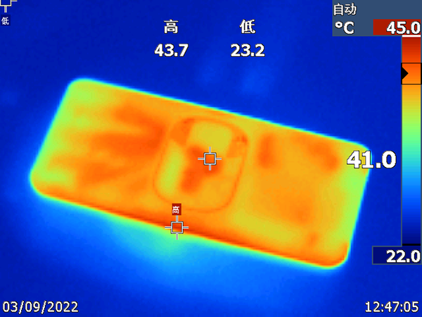 測試數(shù)據(jù)顯示,聯(lián)想拯救者Y90 CPU的平均核心溫度已經(jīng)達(dá)到了57.4°C,在超大液冷VC均熱板和雙擎風(fēng)冷的散熱作用下,機(jī)身最高溫度的部位是雙手不會觸碰到的出風(fēng)口上方,為46.7°C,而手部接觸的部位都在30°C-40°C之間。