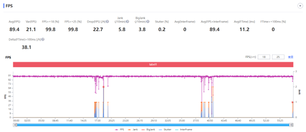 聯(lián)想拯救者Y90平均幀率為89.4幀,幀率十分平穩(wěn),表現(xiàn)優(yōu)秀。目前英雄聯(lián)盟手游還未開放120幀的選項,有些許遺憾。在該環(huán)節(jié)的測試中,聯(lián)想拯救者Y90的CPU平均溫度僅為45.7°C,游戲時手部并沒有明顯熱感。