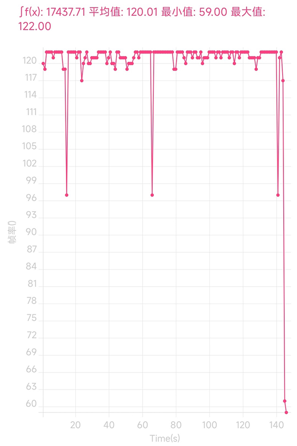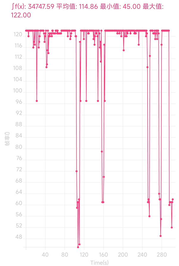 在快速戰(zhàn)局期間,幀率基本保持在120幀,非常穩(wěn)定,除去死亡導致的幀率波動,平均幀率為115幀。