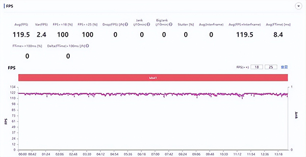在滿(mǎn)幀120幀的《王者榮耀》游戲測(cè)試中,黑鯊5 Pro的平均幀率為119.5幀流暢運(yùn)行毫,幀率曲面圖十分平穩(wěn)沒(méi)有出現(xiàn)幀率波動(dòng)。在游戲體驗(yàn)上,黑鯊5 Pro在團(tuán)戰(zhàn)擊打時(shí)的表現(xiàn)尤為出色,技能釋放流暢穩(wěn)定一氣呵成,絲毫沒(méi)有卡頓的現(xiàn)象,展現(xiàn)了其真正的實(shí)力。