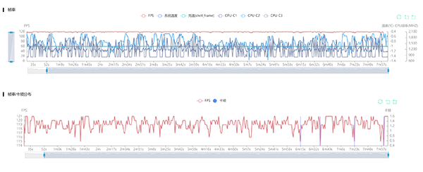 游戲體驗部分,我們選擇王者榮耀進行了測試,在極高幀率以及高清畫質(zhì)下,黑鯊5 Pro的表現(xiàn)非常穩(wěn)定,游戲全程緊貼120幀運行,平均幀數(shù)為119.2幀,抖動率非常低,幾乎感覺不到卡頓現(xiàn)象。