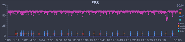 原神,最高畫(huà)質(zhì)+60幀,進(jìn)入游戲后我也數(shù)了下鋸齒,沒(méi)有降分辨率的現(xiàn)象,是標(biāo)準(zhǔn)720P。實(shí)際的幀率表現(xiàn)十分出色,30分鐘幾乎全程保持60幀,只是在后期出現(xiàn)過(guò)短暫的波動(dòng)。平均59.1幀,這應(yīng)該是我目前測(cè)過(guò)的手機(jī)里,原神表現(xiàn)最好的了。
