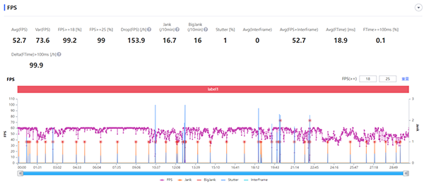 至于《原神》,由于更高的負載,它的表現(xiàn)就沒有那么優(yōu)秀了,但前半段依舊能穩(wěn)定在60幀左右的幀率,直到后續(xù)溫度上升和游戲場景變得更復雜之后才出現(xiàn)了波動的狀況,最后平均幀率為52.7幀——這性能表現(xiàn)倒是和今年不少的新旗艦類似,甚至在平均成績上還能有一定的優(yōu)勢,已經(jīng)是相當優(yōu)秀的水準了。