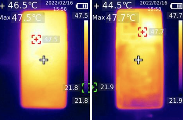 尤其是在主板關(guān)鍵散熱單元的前后兩面均精心設(shè)計(jì)了兩塊 VC 散熱組件,雙 VC 總面積達(dá)到了驚人的 5320mm2。在實(shí)際玩游戲時(shí),機(jī)身持續(xù)保持著最37℃左右(和平精英60幀模式),表現(xiàn)很好了。