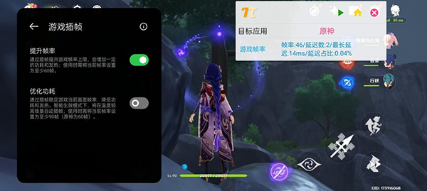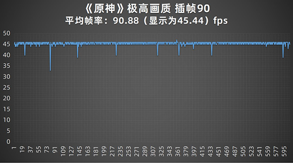 獨(dú)顯插幀的功能已經(jīng)可以將《英雄聯(lián)盟手游》、《和平精英》兩款游戲插幀到120幀,將殺手級(jí)游戲《原神》插幀到90幀?!对瘛穼?shí)測(cè)中,測(cè)試軟件顯示的幀率數(shù)值為插幀后的一半,也就是45幀左右,最終的實(shí)際體驗(yàn)自然是十分驚人,那就是其他手機(jī)上很難看到的滿幀90幀水平。用這款手機(jī)來玩《原神》,遺憾的可能只有所有移動(dòng)端的共同痛點(diǎn)——分辨率閹割了。