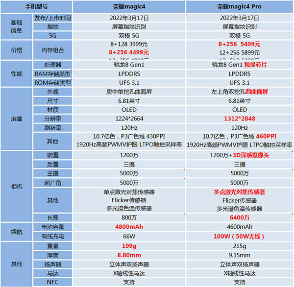 榮耀Magic4和榮耀Magic4 Pro這兩款機(jī)型相同存儲版本的價(jià)格相差一千元左右,Pro版本在性能、屏幕、拍照和快充等方面均有所升級,預(yù)算充足的情況下建議直接上榮耀Magic4 Pro!