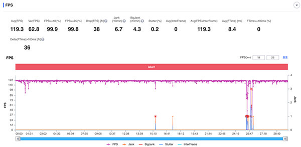 在半小時(shí)《王者榮耀》的游戲中,平均幀率達(dá)到了119.3fps,在游戲過(guò)程中完全沒(méi)有出現(xiàn)幀率波動(dòng)的情況,而且溫度十分舒適,對(duì)于一款面向游戲玩家的設(shè)備來(lái)說(shuō),這個(gè)表現(xiàn)還是中規(guī)中矩的。