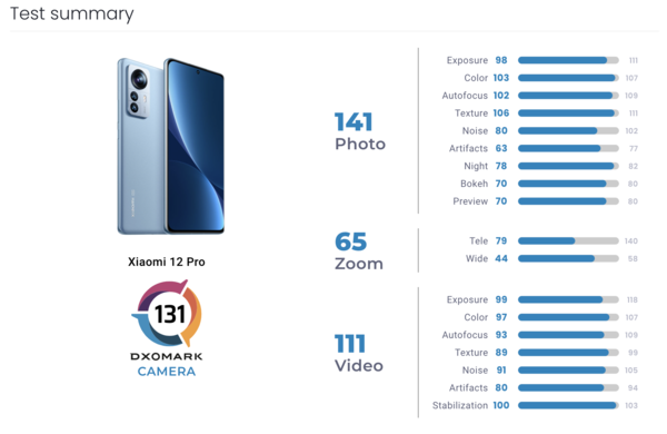 近日,DXOMARK也對小米12 Pro的影像能力進行測試并打分。根據結果來看,小米12 Pro在DXO榜單中排名第十四,其總分為131分,相比小米11 Pro有小幅度提升。