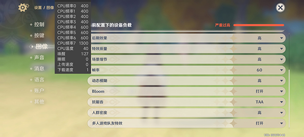 測(cè)試時(shí),游戲的畫(huà)質(zhì)選項(xiàng)調(diào)為全高,具體設(shè)置如下。