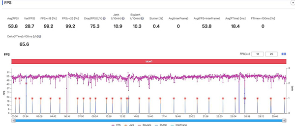 測(cè)試結(jié)束,小編測(cè)得Redmi K50 Pro運(yùn)行《原神》30分鐘的平均幀率可達(dá)53.8fps,幀數(shù)波動(dòng)主要出現(xiàn)在和怪物亂戰(zhàn)、畫(huà)面渲染要素過(guò)多的時(shí)候。