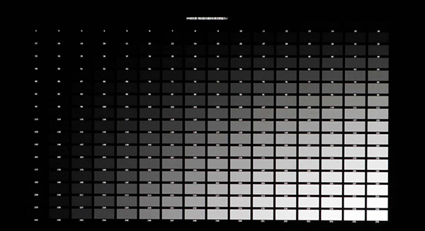 實(shí)際表現(xiàn)方面,通過(guò)觀察Redmi K50 Pro顯示256級(jí)灰階圖片的情況,可以看到,顯示效果從純白到純黑的過(guò)渡十分細(xì)膩,特別是在接近白色和黑色的部分,細(xì)微的差別也能夠呈現(xiàn)出來(lái)。