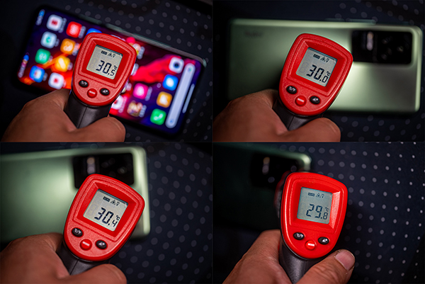 在開始測(cè)試前,我們使用溫度槍測(cè)量了手機(jī)表面的溫度,在室溫18℃的情況下,靜置時(shí)Redmi K50 Pro表面溫度保持在30℃上下。