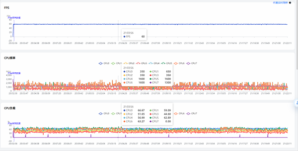 可以看到在運(yùn)行120幀模式的《王者榮耀》時(shí),Redmi K50 Pro的CPU壓力明顯上升,在30分鐘的游戲過程中出現(xiàn)了幾次小的卡頓,導(dǎo)致不能滿幀,不過對(duì)于實(shí)際游戲體驗(yàn)來說無傷大雅。