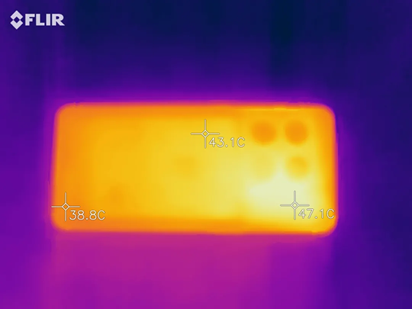 《原神》穩(wěn)定的幀率情況下,發(fā)熱量自然是不會低的,實測30分鐘后最高溫度47℃,其后溫度保持在這一水平,體感溫度也不再有明顯上升,長時間60fps穩(wěn)幀下,還能有這樣的溫控已經(jīng)算不錯了。