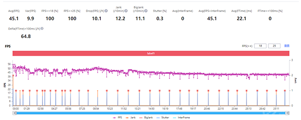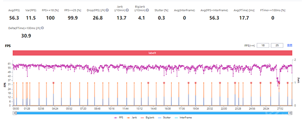 當然,天璣8100并不是一顆嚴格意義上的旗艦芯片,次旗艦、中端市場才是它大放光彩的地方,某種意義上來說我們也是用中端產(chǎn)品的價格,體驗到了比旗艦更出色的游戲表現(xiàn)。那我們也不用以旗艦級的游戲標準,來要求Redmi K50的游戲體驗,我們將《原神》降為中畫質,其它條件保持不變,璃月城持續(xù)跑圖半小時,幀率如下。