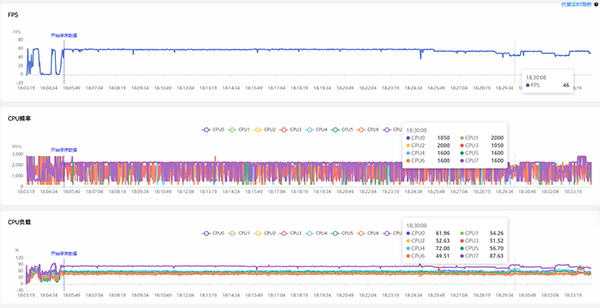 猜測(cè)這樣的溫度變化應(yīng)該是在20分鐘時(shí)出現(xiàn)了撞墻(溫度or功耗),手機(jī)需要通過降低幀率來控制溫度。不過其實(shí)考慮到我們打手游的習(xí)慣,20分鐘前可以滿幀運(yùn)行也基本足以應(yīng)付我們的日常使用。