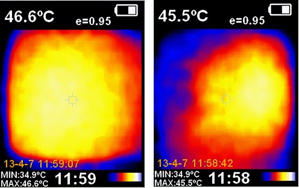 《原神》左圖機(jī)身正面最高溫度,右圖機(jī)身背面最高溫度