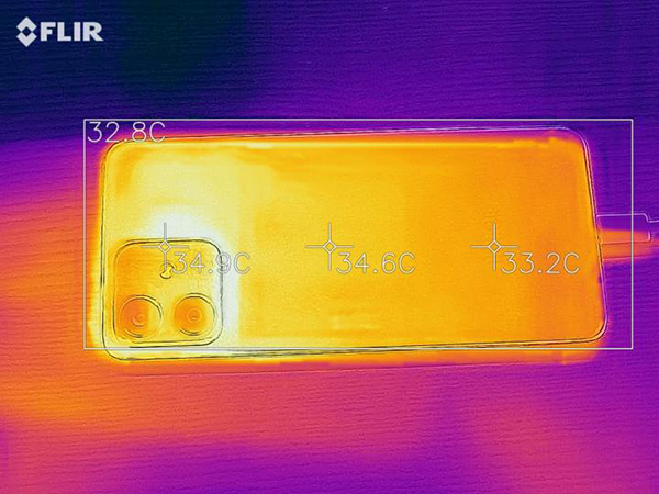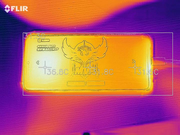在游戲結(jié)束后我們也測量了一下手機(jī)的溫度,無論是正面還是背面,手機(jī)的溫度都沒有超過40度的水平,考慮到整個(gè)測試過程是插線完成的,實(shí)際用戶在玩游戲的過程中很少邊沖邊玩,溫度還會(huì)更低,這個(gè)溫度表現(xiàn)可以說是相當(dāng)好了。