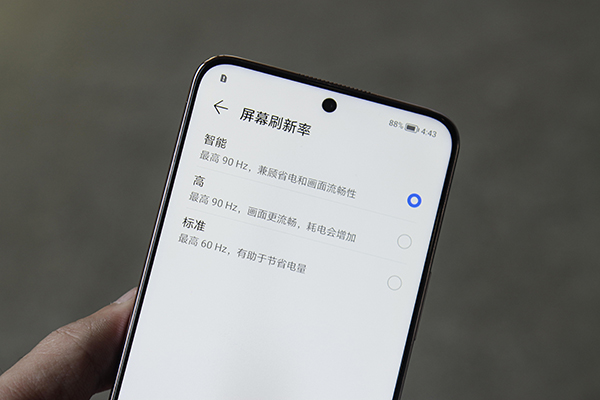 也就是說,這一次的榮耀Play6T Pro支持最高90Hz屏幕刷新率,做為一款售價(jià)僅有1599起步的機(jī)器而言,我覺的這已經(jīng)非常厚道了。開啟智能刷新率調(diào)節(jié)后,就不用擔(dān)心總是開著高刷影響手機(jī)整體續(xù)航。