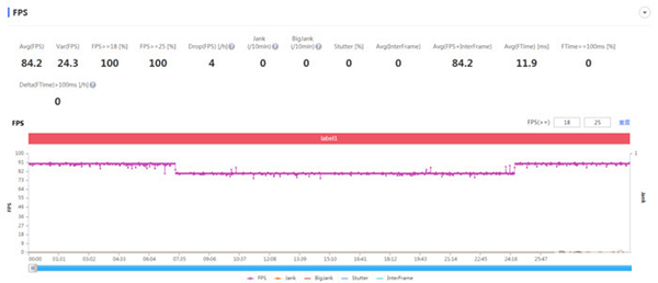 當(dāng)然,如此出色的溫控表現(xiàn)也與vivo X Not對(duì)于90幀和平精英采取了更為保守的調(diào)度方案有關(guān)。從第二輪和平精英幀率走勢(shì)圖中可以看出,游戲的前7分30s,幀率基本處于90Hz一條直線。之后的時(shí)間就開(kāi)始穩(wěn)定掉至80Hz直至整盤(pán)游戲結(jié)束后結(jié)算階段才回升至90Hz。