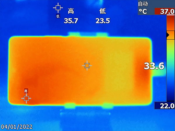 依靠著超導(dǎo)廣域散熱系統(tǒng)的出色發(fā)揮,vivo X Note在第二輪和平精英測(cè)試中依舊維持了“冷”靜的表現(xiàn)。機(jī)身正反面最高溫度出現(xiàn)在測(cè)試開(kāi)始的第10分鐘,正面:35.7℃,反面:34.3℃。