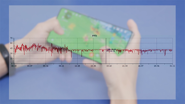 不過在原神上,vivo就表現(xiàn)得很保守了,前十分鐘幀率還在45左右波動,10分鐘過后就鎖40幀了。那么為什么會直接鎖呢,是不是溫度過高?