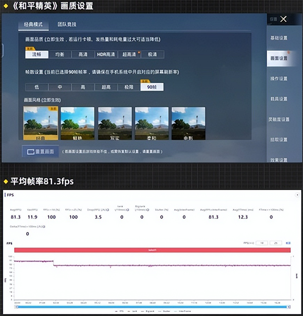 相比《王者榮耀》,《和平精英》畫面質(zhì)量還要更高一些,對手機(jī)性能要求也更高。在90幀游戲模式下,游戲全程的平均幀率達(dá)到了81.3fps。游戲過程中出現(xiàn)了降頻情況,后半程幀率降到了80幀左右,性能調(diào)度偏保守,不過游戲穩(wěn)定性不錯,全程都很流暢,沒有出現(xiàn)明顯的卡頓。