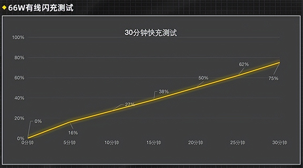在測試之前,筆者首先將其完全耗盡電量,連接自帶的80W充電器進(jìn)行測試。根據(jù)我們的實(shí)測數(shù)據(jù),在當(dāng)前室溫環(huán)境下,30分鐘可充入75%電量。