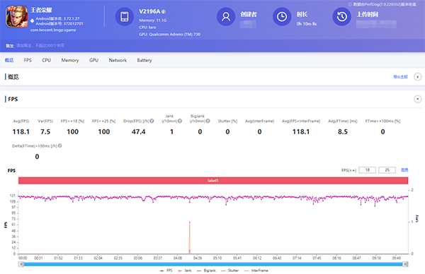 在獨(dú)立顯示芯片 Pro的加持下,iQOO Neo6還在游戲場(chǎng)景的幀率、功耗以及畫(huà)面等方面迎來(lái)了巨大的提升。在其幀率提升模式下,該芯片可以計(jì)算出游戲兩幀畫(huà)面,進(jìn)而從中插入一幀過(guò)渡幀,以突破游戲的原生幀率。而在高幀低功耗模式下,獨(dú)立顯示芯片 Pro則能夠分擔(dān)GPU一半的畫(huà)面渲染數(shù)量,從而降低GPU負(fù)載壓力,降低整機(jī)功耗并改善發(fā)熱與掉幀的情況。在實(shí)際體驗(yàn)中,我選擇了《王者榮耀》這款游戲進(jìn)行測(cè)試,可以看到,iQOO Neo6全程將幀數(shù)穩(wěn)定在了平均118.1幀的狀態(tài)下穩(wěn)定運(yùn)行,表現(xiàn)令人滿意。如果恰好購(gòu)買(mǎi)了本次同步發(fā)布的極風(fēng)散熱背夾Pro的話,游戲幀率相比裸機(jī)使用會(huì)更加穩(wěn)定。