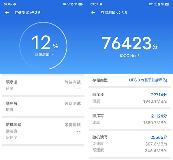 這是什么概念呢?我們首先來看看iQOO Neo6的存儲成績??梢钥吹?,雖然持續(xù)讀寫速度并不算特別夸張,但其隨機性能卻意外地非常高。要知道絕大多數(shù)當(dāng)前的旗艦機型閃存隨機讀寫基本在260MB/s-280MB/s的水平,而iQOO Neo6的閃存隨機性能,則比這樣的平均水準(zhǔn)高出了20%、甚至更多。