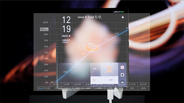 66W快充下,5分鐘沖入16%,10分鐘沖入32%,15分鐘沖入48%,20分鐘沖入62%,25分鐘沖入72%,30分鐘沖入82%,35分鐘沖入91%,最終39分鐘充滿,整體的速度還不錯,期待vivo以后將更高功率和更大電池加入到下一代折疊屏當(dāng)中。