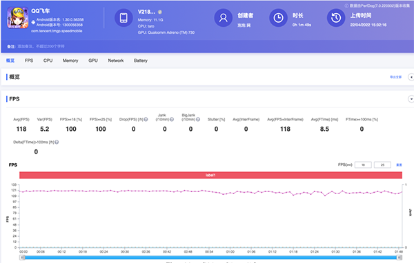 vivo X80 Pro支持了QQ飛車120幀高刷新率,在實測當中,整個競速過程中幀率較為穩(wěn)定,非常流暢。