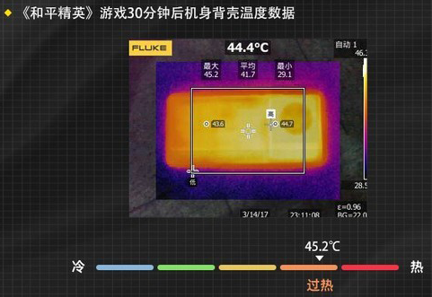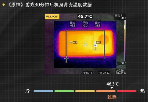 通過游戲前后對機身溫度的取樣來看,我們發(fā)現(xiàn)vivo X80對溫度的控制很不錯,在《王者榮耀》游戲后的機身最高溫度為44℃,平均溫度為41.2℃,與游戲前相比溫度僅上升了12.3℃;在《和平精英》游戲后的機身最高溫度為45.2℃,平均溫度為41.7℃,與游戲前相比溫度僅上升了14.2℃;在《原神》游戲后的機身最高溫度為46.3℃,平均溫度為43.3℃,與游戲前相比溫度僅上升了16.3℃;優(yōu)秀的散熱能力也可以使vivo X80釋放出其全部能力。