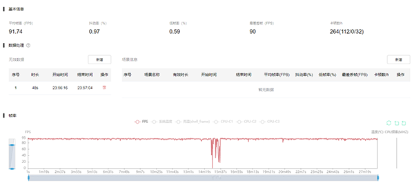 首先是《王者榮耀》的測(cè)試。OPPO K10 Pro目前能支持到最高90幀的高幀模式,實(shí)際測(cè)試結(jié)果確實(shí)是非常穩(wěn)定,甚至略微超出了上限,平均幀率達(dá)到了91.53幀,毫無(wú)疑問(wèn),如果后續(xù)開(kāi)放了120幀的模式,它會(huì)有更優(yōu)秀的幀率成績(jī)。