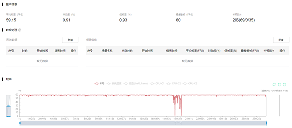 比較可惜的是,OPPO K10目前就只能支持60幀的高幀率模式了,為了更好地體現(xiàn)它的性能釋放,我們將它的畫(huà)質(zhì)選項(xiàng)提升到了“極致”,實(shí)測(cè)平均幀率也是達(dá)到了幾乎滿幀的59.15幀,不難推測(cè)它在更高幀率的模式里也會(huì)有更好的表現(xiàn)。