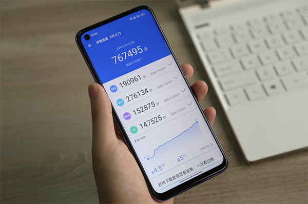 另外,與這枚處理器想搭配的還有LPDDR5+UFS 3.1,三者構(gòu)成了全新的“性能鐵三角”,在OPPO聯(lián)合聯(lián)發(fā)科的深度調(diào)校下,最新版安兔兔跑分達(dá)到了76W以上的成績,其中GPU部分跑分達(dá)到了27萬+,接近主流旗艦芯的性能水平。