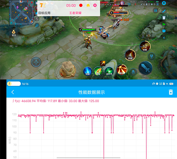 在《王者榮耀》測(cè)試中,vivo X80作為首批同時(shí)支持“極高幀率+極致畫(huà)質(zhì)”模式運(yùn)行的機(jī)型,在這個(gè)模式下測(cè)試,負(fù)載要高于無(wú)法同時(shí)開(kāi)啟的其他機(jī)型,即使如此,vivo X80在游戲時(shí),全程能夠在絕大部分時(shí)間穩(wěn)定在120fps,15分鐘平均幀率達(dá)到了117.89fps。