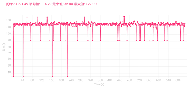 我們打上一局游戲,全局幀率都穩(wěn)定在114.29 FPS左右,看幀率曲線圖波動極小,手機背部也沒有發(fā)熱,始終維持在37℃左右。