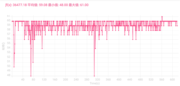 《和平精英》目前僅支持60幀的極限幀率,開啟HDR高清畫質(zhì)進行測試,平均幀率59.08 FPS,同樣十分穩(wěn)定。