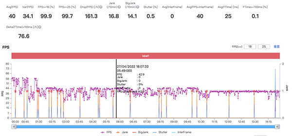 筆者選擇了高檔畫質(zhì)+60幀,動(dòng)態(tài)模糊關(guān)閉,游戲場(chǎng)景選擇野外打怪,在15分鐘左右的游戲中,OPPO K10 Pro平均幀率為40fps。