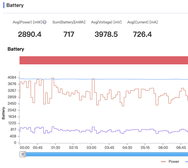 再來(lái)看一下功耗,30分鐘的原神,平均功耗還不到6W(雙電芯,2.89*2):